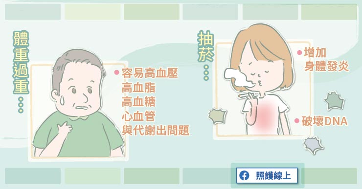 維持體重幾乎可說是第一要務。相信這並不違背大家原本的認知,畢竟一直以來,肥胖就與三高習習相關,體重過重的時候,罹患高血壓、胰島素阻抗性、以及血脂不正常的機會都會大幅增加,心血管疾病和代謝性疾病就跟著來。