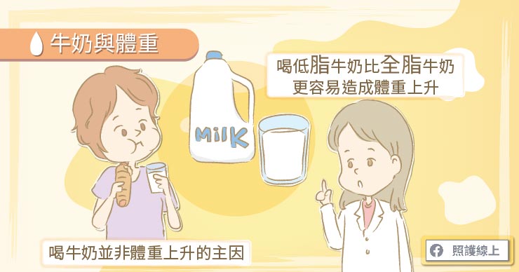 過去有個關於一萬多名青少年、追蹤三年的研究,結論發現當受試者都是攝取低脂牛奶,比較會增加體重;若受試者都是攝取全脂牛奶,就反而沒有體重增加的困擾。同樣地,在關於兒童的研究裡,喝全脂牛奶的人平均體重比較輕,比較沒有肥胖問題,但喝低脂或零脂牛奶者則體重較重。這些結果可能就與一般人的想像有點衝突了!