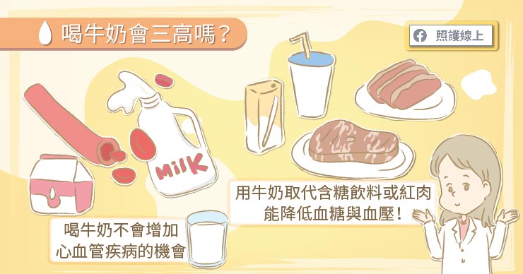 假如我們把牛奶當成飲品的一種,原本自己喜歡喝含糖大杯飲料、喝果汁,後來改成喝一杯牛奶,那對身體當然是好的,甚至此舉還可能會降低你的血壓,對血糖控制也有幫助。