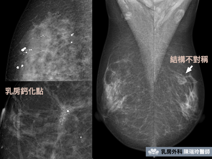 乳房攝影是非常有效率的乳癌篩檢工具,目前國民健康署提供40至45歲以上女性,每兩年一次免費的乳房攝影檢查;原理是利用適當的擠壓和擺位,再透過放射線成像,把我們立體的乳房變成數張平面的照片。乳房攝影最大的優點是解析度很好,而且不太需要耗費太多時間或人力就可以完成;許多早期的乳房原位癌、甚至是肉眼或手無法覺察的早期癌前病變,都可經由乳房攝影,以鈣化點、結構不對稱等變化表現出來,有很好的偵測度和敏感度。