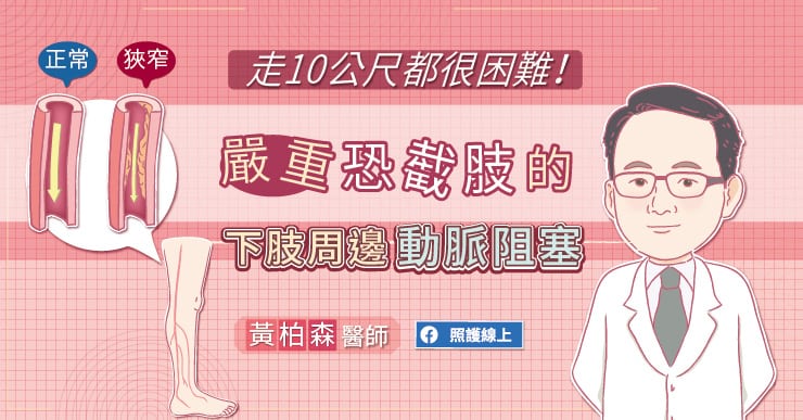 黃柏森醫師提醒,因為民眾對於下肢血管阻塞較不熟悉,容易延誤就醫,甚至拖到腳趾發黑,此時治療難度很高效果也較差,因此呼籲民眾要對腿部冰冷、痠麻、疼痛提高警覺,及早就醫、及早治療。
