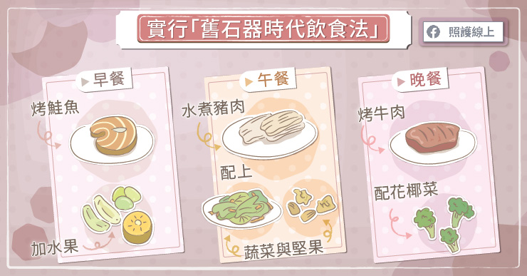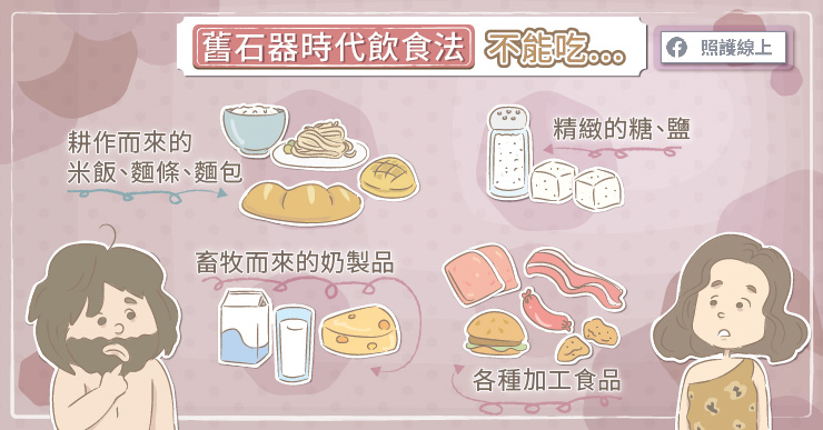 「舊石器時代飲食法」的倡議者認為,當現代人放棄從農耕與畜牧獲得的食材,只吃狩獵和採集能獲得的食物,就能減輕體重、讓人血糖的耐受性變好、及讓血壓較受控制。然而,我們必須提醒大家,目前並沒有什麼長期追蹤研究,或大規模的研究能證實這是一個值得信賴的飲食方式。