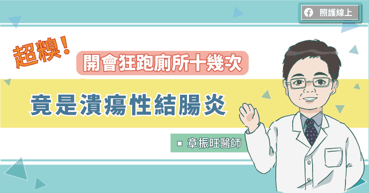 「醫師,我上班狂跑廁所,一天拉十幾次,真的很困擾!尤其遇到公司開會,我就更緊張,因為肚子不聽使喚,必須頻繁進出會議室廁所折返跑,嚴重影響工作效率跟同事觀感。這樣的腸胃症狀時好時壞持續一年多,原以為是腸躁症,自行到藥局拿藥吃,但是近來發現症狀加劇,還伴隨血便、頭暈、疲倦等症狀,這才驚覺不對勁來就醫。」三十多歲的邱先生一臉憂慮地問。