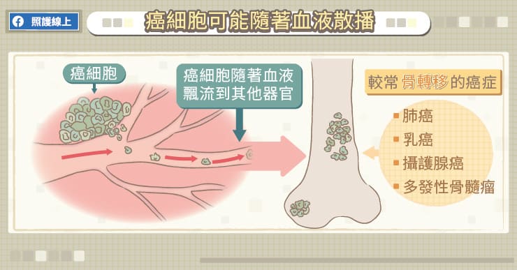 高雄市立大同醫院洪仁宇副院長說明,癌細胞是種生長快速、不受控制的細胞,容易侵入血管,隨著血液漂流到其他器官,然後像種子一般,在其他骨骼等非原發的器官落地生根,一旦轉移至骨骼中,就稱為癌症骨轉移。