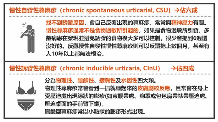 慢性蕁麻疹分兩大類:「自發性」與「誘發性」
