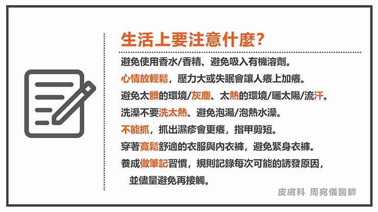 7. 養成做筆記習慣,規則記錄每次可能的誘發原因,並儘量避免再接觸。