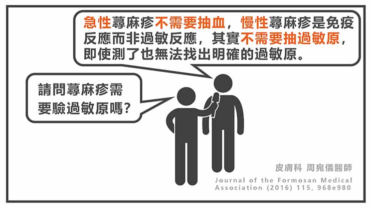 急性蕁麻疹不需要抽血,在六週內其實過敏指數的效價還上不來。