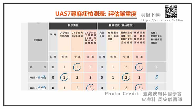 UAS7蕁麻疹檢測表評估嚴重度—UAS7表格下載: https://reurl.cc/j5z08m