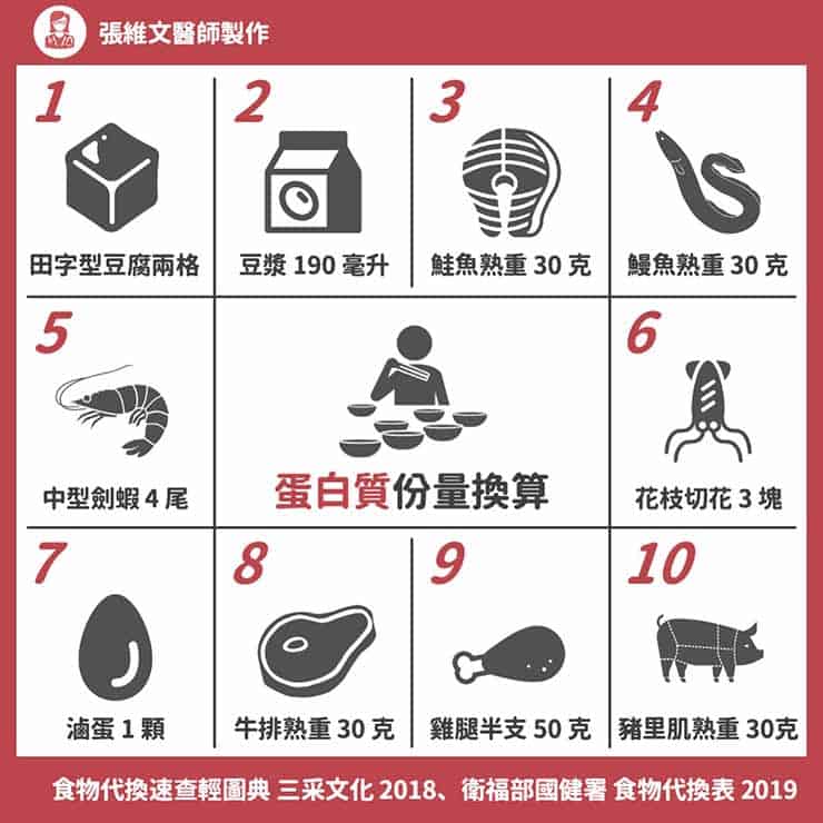 更多關於蛋白質的份量換算,可見【蛋白質份量這樣算】一文。