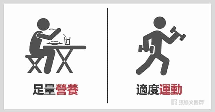 要預防或改善肌少症,足量營養、適度運動是經醫學實證認可的兩帖良方。蛋白質與熱量攝取要足夠,運動更是不能少!