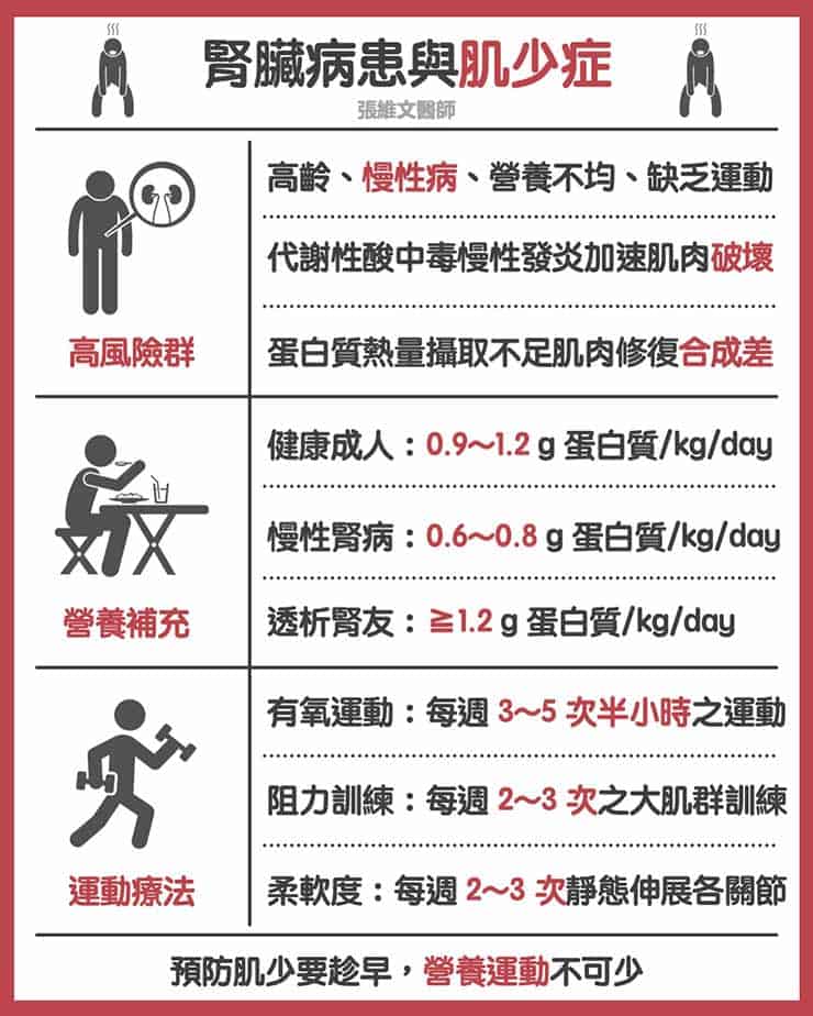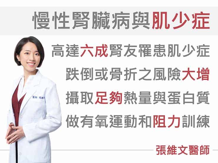 其中,慢性腎臟病患更是罹患肌少症的高危險群,除了體力變差外,站不穩、易跌倒甚至骨折,住院率與死亡率也較高。