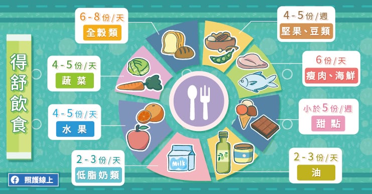得舒飲食(DASH Diet)一開始也是為了健康,減少患者高血壓發作,控制血壓而發展出來的飲食法。飲食的內容會建議吃大量的深綠色蔬菜、適量的水果、全穀類、低脂及零脂鮮乳、家禽白肉、並選用好油。但要注意,務必限制飲食中的膽固醇、飽和脂肪、鹽分、添加糖、以及紅肉,也就是少油、少鹽、少糖。
