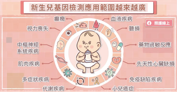 受惠於醫學的進展,目前已可運用基因檢技術讓新生兒篩檢更加完善,「新生兒基因檢測」只需寶寶採取幾滴血液或是刮取口腔黏膜細胞便能進行檢驗,能夠提早驗出晚發型的寶寶,且涵蓋更多疾病種類。