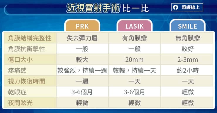 近視雷射手術比一比,PRK、LASIK、SMILE有何差別?眼科醫師圖解說明