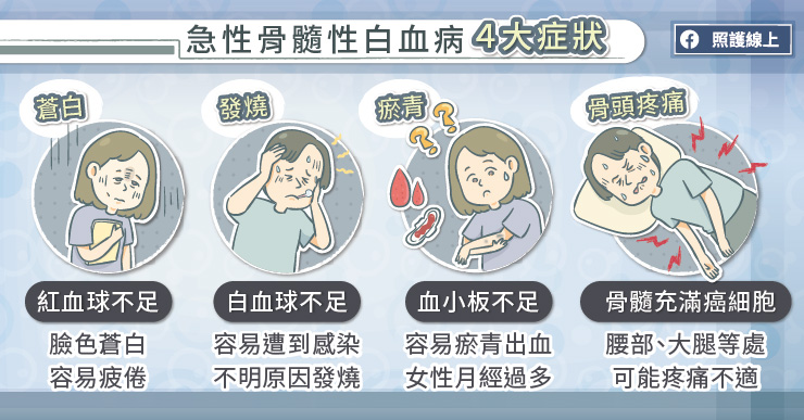 若出現4大症狀想要探詢更多衛教資訊,或是想要尋找住家附近醫院及醫師進行相關檢查、治療,可點擊下方連結,進入中華民國血液病學會 急性骨髓性白血病與骨髓化生不良症候群疾病工作組成立之「急性骨髓性白血病衛教網站」,取得完整疾病介紹及治療資源。https://knowamltaiwan.org/  。