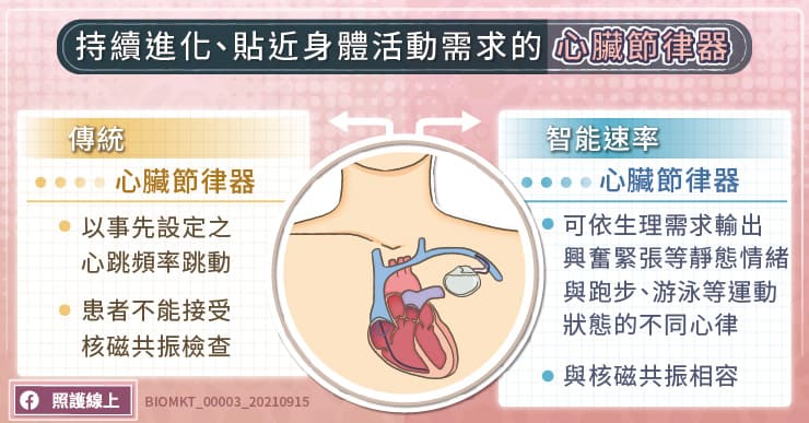 智能速率心臟節律器是透過感應心臟本身的收縮率,來調節加速,能更加符合生理需求,因此可同步改善上述缺點。