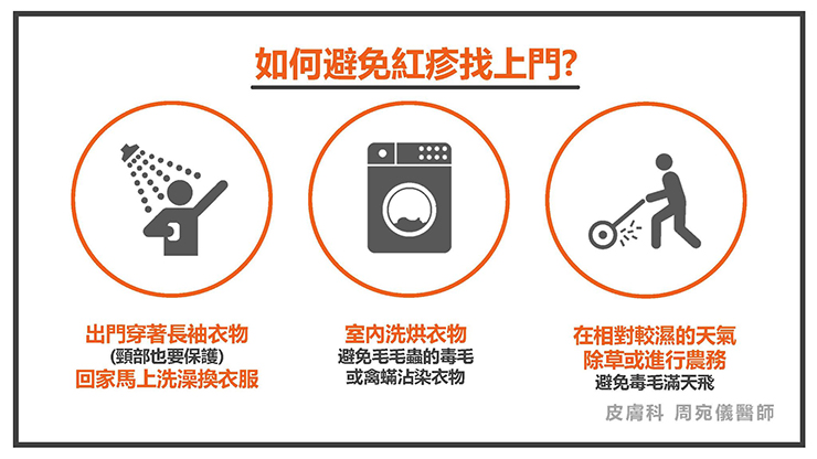 3. 在相對較濕的天氣除草或進行農務,避免毒毛滿天飛。