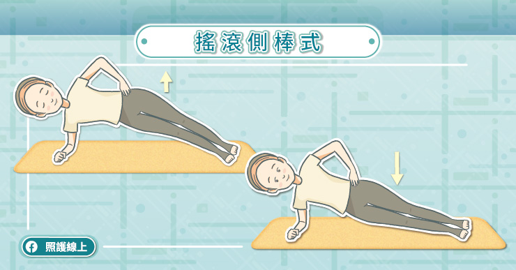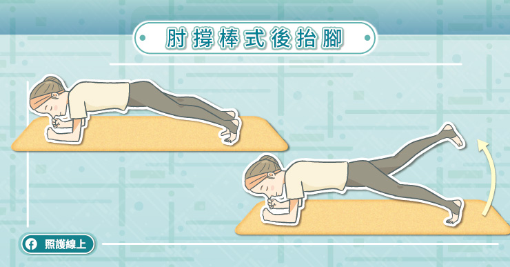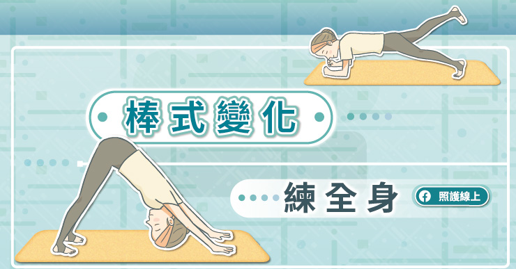 一般來說,棒式撐體的練習可以停留30秒到1分鐘左右,但隨著撐體時間延長,核心肌群愈來愈疲勞,有些人開始會姿勢跑掉,或覺得腰背痠痛。因此,我們下面的練習比較多是改成動態的變化型,避免因為一直「ㄍㄧㄥ」住而施力不當。