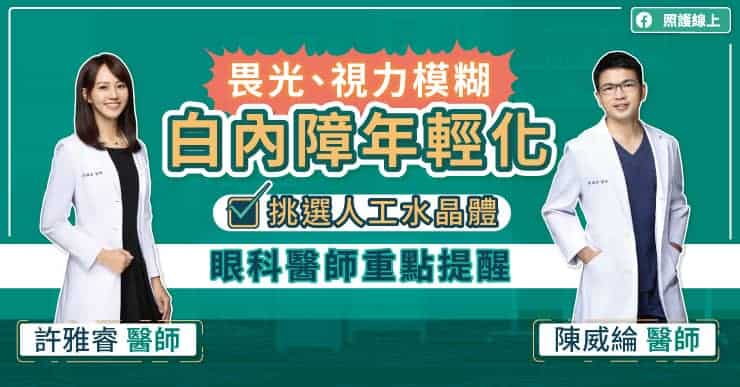 白內障並非老年人的專利,許雅睿醫師說,如果出現畏光、視力模糊等狀況,務必盡快就醫喔!
