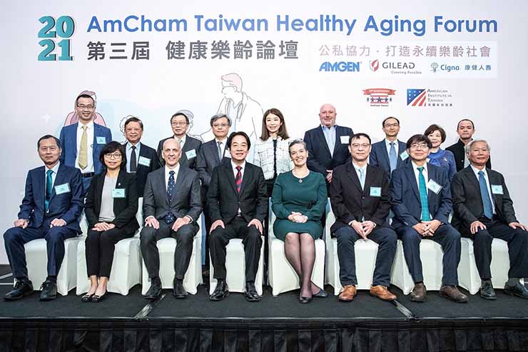 根據國家發展委員會報告〔1〕指出,台灣預計將於2025年邁入超高齡社會。為確保台灣醫療體系與社會經濟永續發展,台灣安進三度攜手台灣美國商會與康健人壽,今年更首度與美國在台協會和吉立亞醫藥合作,共同舉辦第三屆健康樂齡論壇,以「公私協力、打造永續樂齡社會」為主題,特別邀請中華民國副總統賴清德、美國在台協會處長孫曉雅(Sandra Oudkirk)、衛生福利部常務次長石崇良、衛生福利部中央健康保險署署長李伯璋、衛生福利部國民健康署副署長賈淑麗、中華民國骨質疏鬆症學會理事長黃兆山、臺北榮民總醫院院長許惠恒、台灣安進總經理李宜真、中央研究院院士陳培哲、義大醫院肝膽腸胃科主任許耀峻、台灣肝臟研究學會會長林漢傑、中國醫藥大學附設醫院消化醫學中心院長林肇堂、台灣癌症基金會副執行長蔡麗娟、康健人壽總經理暨執行長邵駿崴(Tim Shields)、鳴醫股份有限公司創辦人暨執行長謝懿和台灣美國商會執行長魏立安(Andrew Wylegala)跨界對談,針對高齡常見疾病之骨質疏鬆症、肝臟疾病和心理健康主題,為國家健康政策現況與規畫提出多項具體建言與解方,聚焦公私協力合作加速落實國家健康政策,打造行動自如與心理健康之永續樂齡社會,促進長者健康福祉之目標。