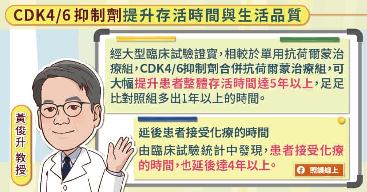 CDK4/6抑制劑能達到延後化療時間,且治療過程中生活品質好,患者接受度高