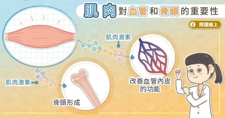 肌肉激素也能減少體內的慢性發炎反應,讓血管內皮較為健康。當血管內皮愈健全,就能減少心血管疾病的發生。