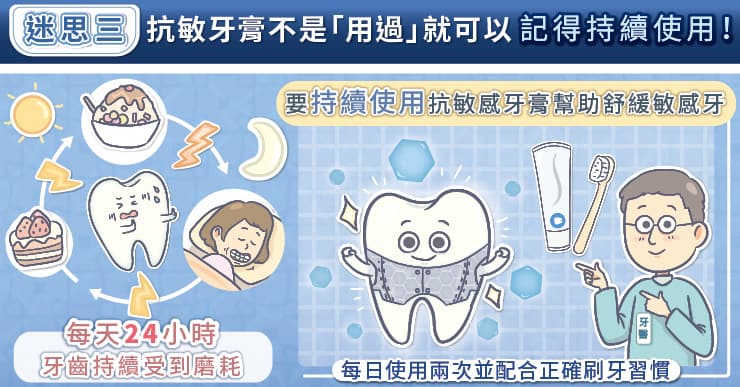 迷思三:抗敏牙膏不是「用過」就可以,記得持續使用!