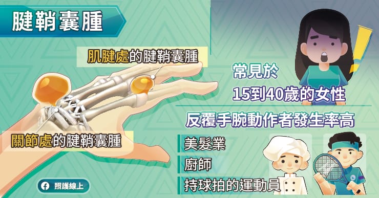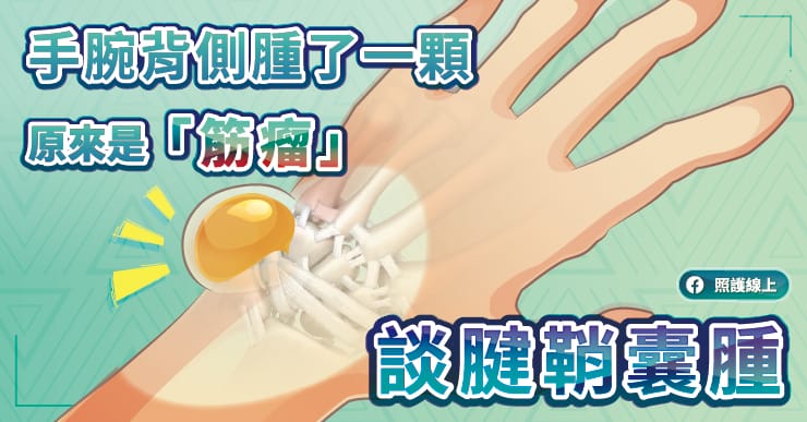 腱鞘囊腫是一團長在手腕或手部關節處與肌腱處的腫塊,看到一顆腫瘤,大家一定最擔心的是:「這是不是惡性的?」請放心,如果在手腕或手指關節處突然凸了一塊圓滾滾的球狀物,那最可能的原因就是「腱鞘囊腫」,而腱鞘囊腫這一團腫塊並非「壞東西」,並不是惡性的腫瘤。