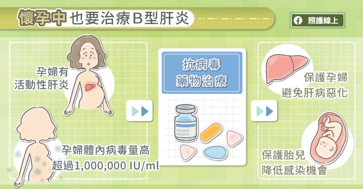 如果媽媽是B型肝炎帶原者,而且處於活動性B型肝炎,黃釧峰醫師解釋,不管在懷孕前、懷孕中,都應該針對媽媽來評估抗病毒藥物的治療,目的是保護媽媽,避免肝病惡化。