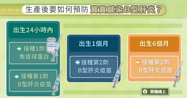 自2019年7月開始,只要母親的B型肝炎表面抗原(s抗原)為陽性,便會在出生24小時內儘速替新生兒接種1劑公費B型肝炎免疫球蛋白HBIG和第1劑B型肝炎疫苗,以提升阻絕母子垂直傳染的成效。