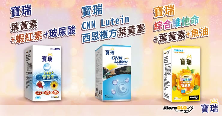 除了葉黃素的獨家專利成份外,寶瑞葉黃素更針對不同需求者推出了添加不同配方之產品,如:專為高度用眼族群設計的「寶瑞葉黃素+蝦紅素+玻尿酸」特別添加日本頂級玻尿酸與紅球藻萃取Esolv®蝦紅素;「寶瑞 DHA+葉黃素」採用冰島小型深海魚萃取TG型態魚油,以EPA:DHA黃金比例18:12調配;「寶瑞 CNN Lutein 西恩複方葉黃素」添加藍莓、三桑子、明亮草…等草本複方,擁有豐富的花青素、維生素E,給純素食者最天然健康的好選擇!
