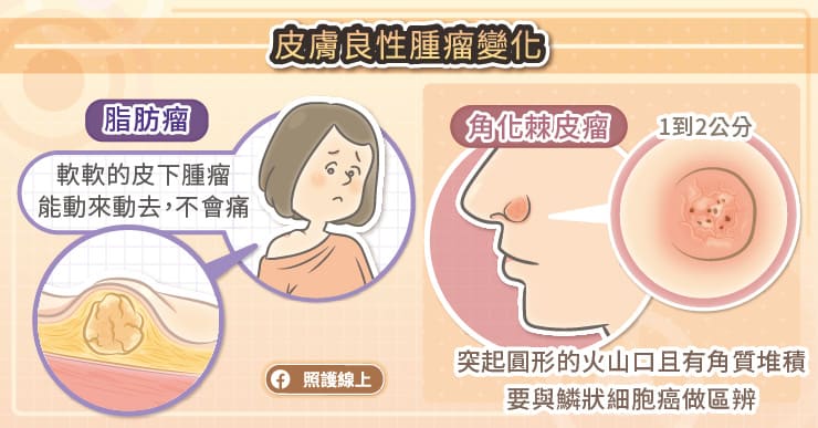 皮膚冒出問題,尤其是一顆顆、摸起來硬硬的東西時,總讓人緊張究竟是什麼病因。這裡我們來看看幾個常見的良性皮膚腫瘤