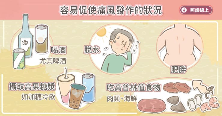 有幾個原因特別容易促使痛風發作: