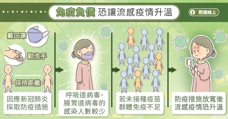 當自然感染的人數較少時,如果大家又沒有接種疫苗,便無法形成群體免疫。因此在新冠肺炎COVID-19防疫規定逐步放寬之後,各種呼吸道病毒、腸胃道病毒的疫情便可能逐漸升溫。