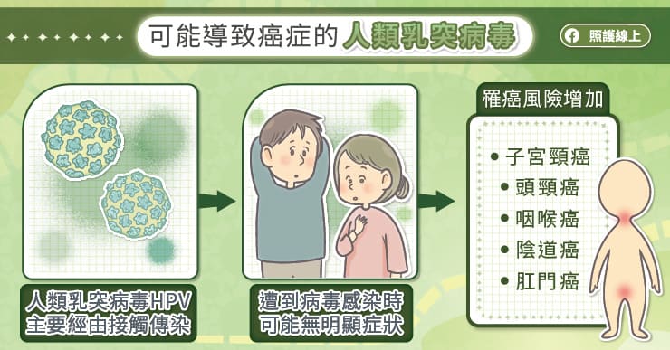 人類乳突病毒HPV有很多型,其中幾型可能增加罹患癌症的風險,黃玉成醫師表示,在女性可能導致子宮頸癌、陰道癌,在男性還可能導致頭頸癌、咽喉癌、肛門癌等。