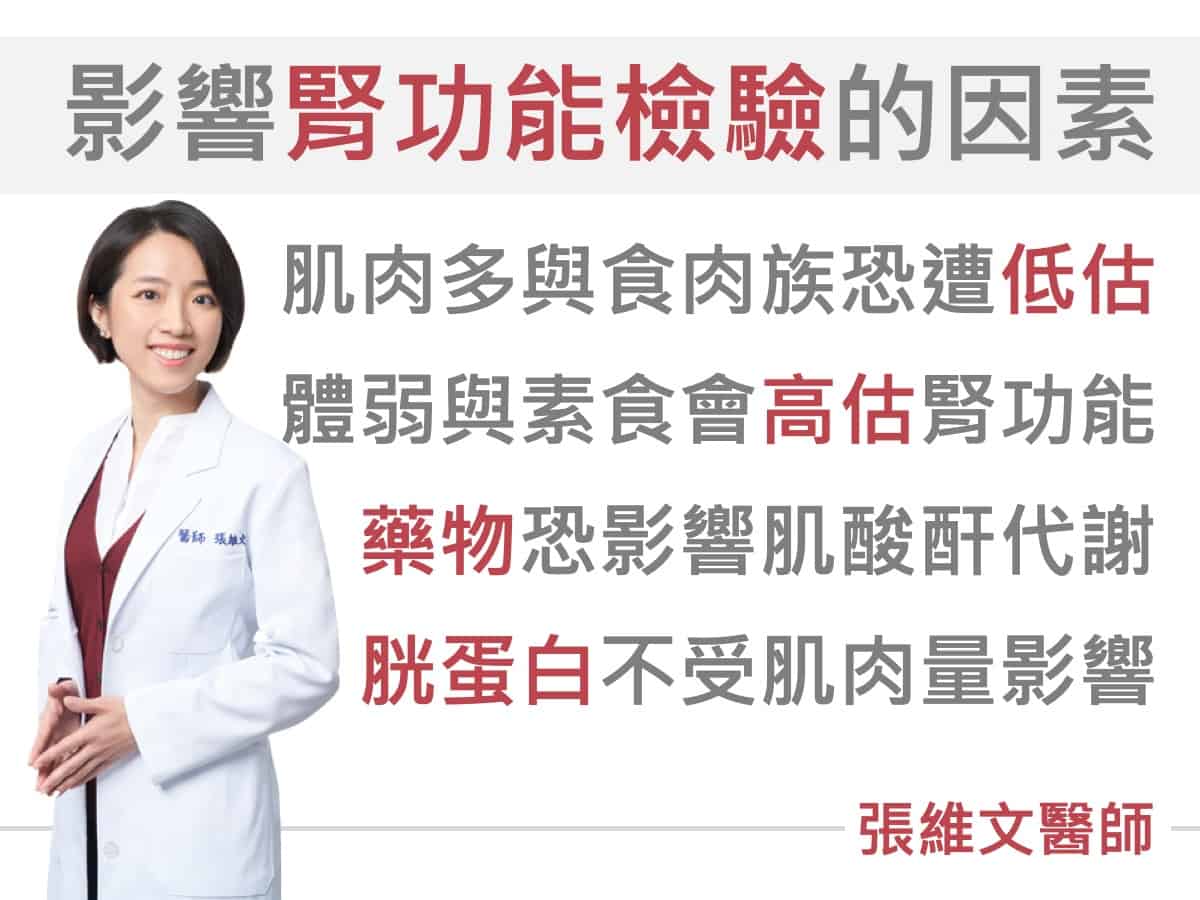 但也有其他因素(non-glomerular factor)會干擾肌酸酐的檢驗值: