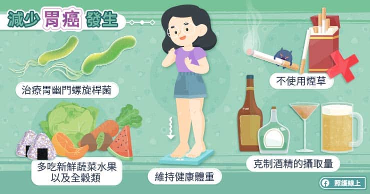 簡單來說,克制酒精的攝取量,不要使用任何形式的煙草,多吃新鮮蔬菜水果以及全穀類,維持健康體重,並治療胃幽門螺旋桿菌感染,就是目前最好的胃癌預防方式。