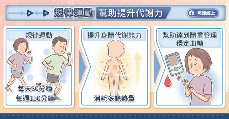 規律運動有助於穩定血糖,不過還是要搭配飲食控制與按時服藥,才能避免高血糖、預防低血糖,達到「消峰去谷」的穩定控糖成果。用藥的選擇亦相當重要,在對的時間、用對的藥物、在對的患者身上,能夠發揮較好的成效。