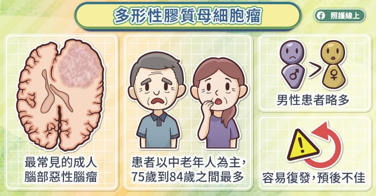 至於確診,還是要等手術移除腦部腫瘤組織,做化驗之後才能確定是多形性膠質母細胞瘤。