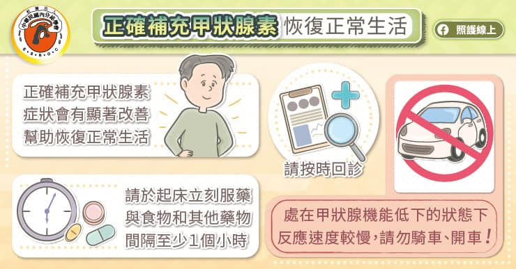 補充甲狀腺素後,患者會感到顯著改善,所以大多願意按時服藥,也能避免出現後續的併發症。