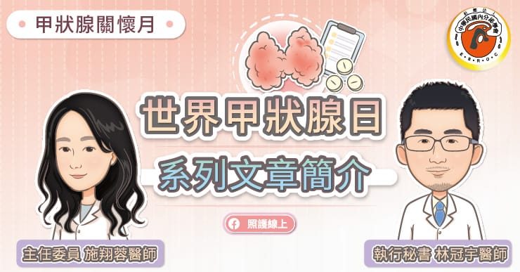 五月二十五日是世界甲狀腺日,學會藉由這個機會來宣導大家注意甲狀腺的健康。甲狀腺位於脖子前方,分泌甲狀腺素,以促進心跳、呼吸、腸胃蠕動、神經反應、產熱等等,像是身體的油門,非常重要。感謝劉鳳炫理事長的領導,副秘書長林冠宇醫師的規劃,由陳維健秘書長、陳怡文醫師、陳冠樺醫師、黃則穎醫師、吳明諴醫師為常見的甲狀腺疾病撰寫了一系列實用又易懂的文章,供民眾參考。惟需特別注意,每個人狀況不同,有時差異很大,不能一概而論,對於自身的疾病處置,還是得個別請教醫師才好。健康的飲食、適當的運動、足夠的休息,是維持健康的不二法門,大家一起努力!