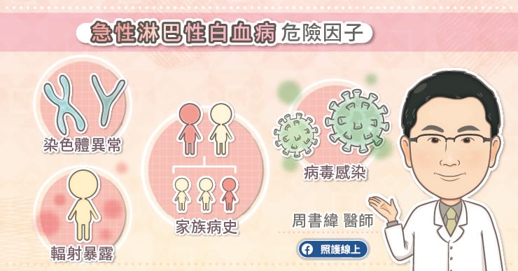 分析白血病細胞會發現其基因產生了變化,周書緯醫師說,產生基因變化的原因目前未知,不過有些研究發現可能與染色體異常、病毒感染、輻射暴露、家族病史有關。