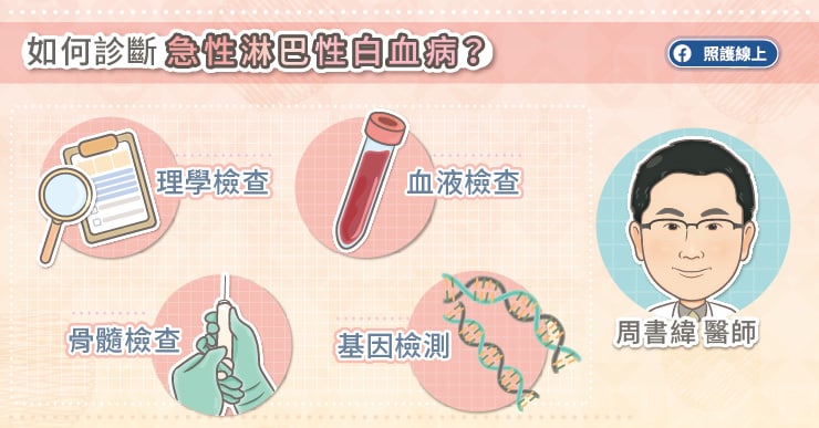 由於急性淋巴性白血病的來源是骨髓,所以需要做骨髓檢查,醫師會利用一根針把骨髓裡面的細胞抽出來分析。周書緯醫師說,傳統的方法是用顯微鏡去檢查,如果是急性淋巴性白血病,骨髓裡會被癌細胞佔據。現在還可以用流式細胞儀、基因檢測進行更精密的分析,確認白血病的亞型,幫助擬定治療計畫。