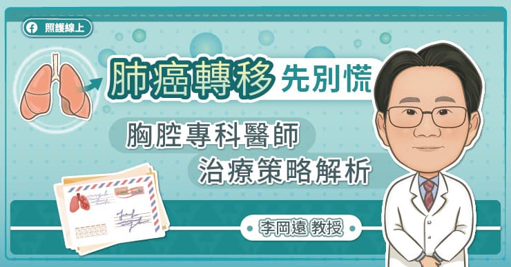 晚期肺癌常出現轉移部位包括腦部、骨頭、肝臟等處,可能造成不同的症狀。李岡遠醫師說,肺癌轉移到腦部,可能出現頭暈、頭痛,較嚴重時可能造成腦部功能障礙,甚至腦壓可能會升高,使病友噁心、嘔吐、陷入昏迷。轉移到骨頭,可能出現骨頭疼痛,若是轉移到承重的骨頭,例如股骨,便可能在活動時產生骨折;如果轉移到脊椎,可能造成脊椎塌陷,進而壓迫脊髓的神經,導致半身不遂、癱瘓等狀況。轉移到肝臟的病友,初期幾乎沒有症狀,等到腫瘤變大時,如果貼近肝臟邊緣,可能造成肚子痛;如果肝臟多處轉移,會影響肝臟功能,而造成黃疸,甚至肝昏迷。