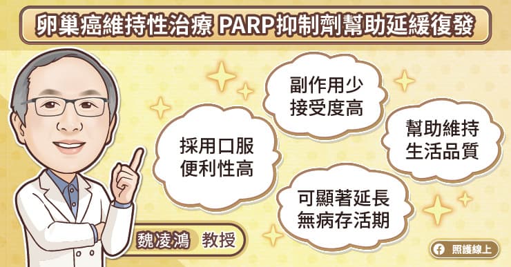 早期大家嘗試使用低劑量化學治療作維持性治療,但是副作用較多,效果也不理想。魏凌鴻醫師說明,現在已發展出治療機轉較精準的PARP抑制劑標靶藥物,對卵巢癌的治療是一個重要的突破。