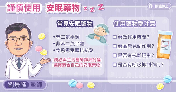 劉景隆醫師說,由於苯二氮平類安眠藥物會改變睡眠結構,長期使用後,部分患者會覺得記憶力受到影響。另外,部分苯二氮平類藥物具有呼吸抑制的作用,呼吸中止症患者也需特別留意使用此類藥物。