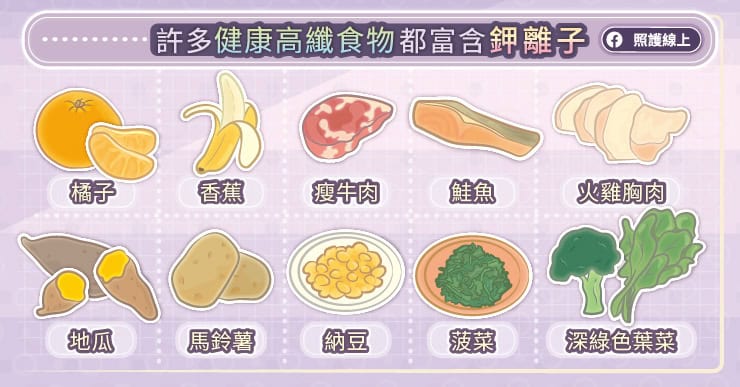 - 依據醫師指示補充鉀離子的錠劑或接受靜脈輸液。