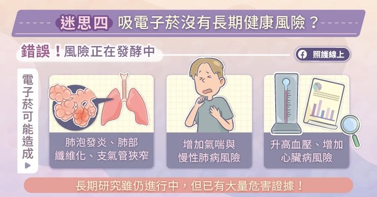 迷思四:吸電子菸比較不會有長期的健康負擔