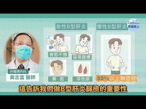 劉育志醫師:大家好,我是劉育志醫師,歡迎黃志富教授來到照護線上。劉育志醫師:請問黃教授在台灣B型肝炎的盛行率大約多少?黃志富醫師:在台灣B型肝炎盛行率為10-12%是目前的數字,台灣是全世界第一個國家...