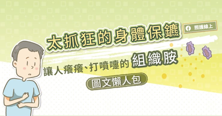 如果你感冒了,到診所就醫,醫師常常會使用「抗組織胺」來減緩一些鼻塞、流鼻水的症狀。經常這裡癢那裡癢的朋友,可能被診斷為異位性皮膚炎好一陣子,平時也要靠「抗組織胺」來減緩症狀。那麼,組織胺究竟是什麼?為...